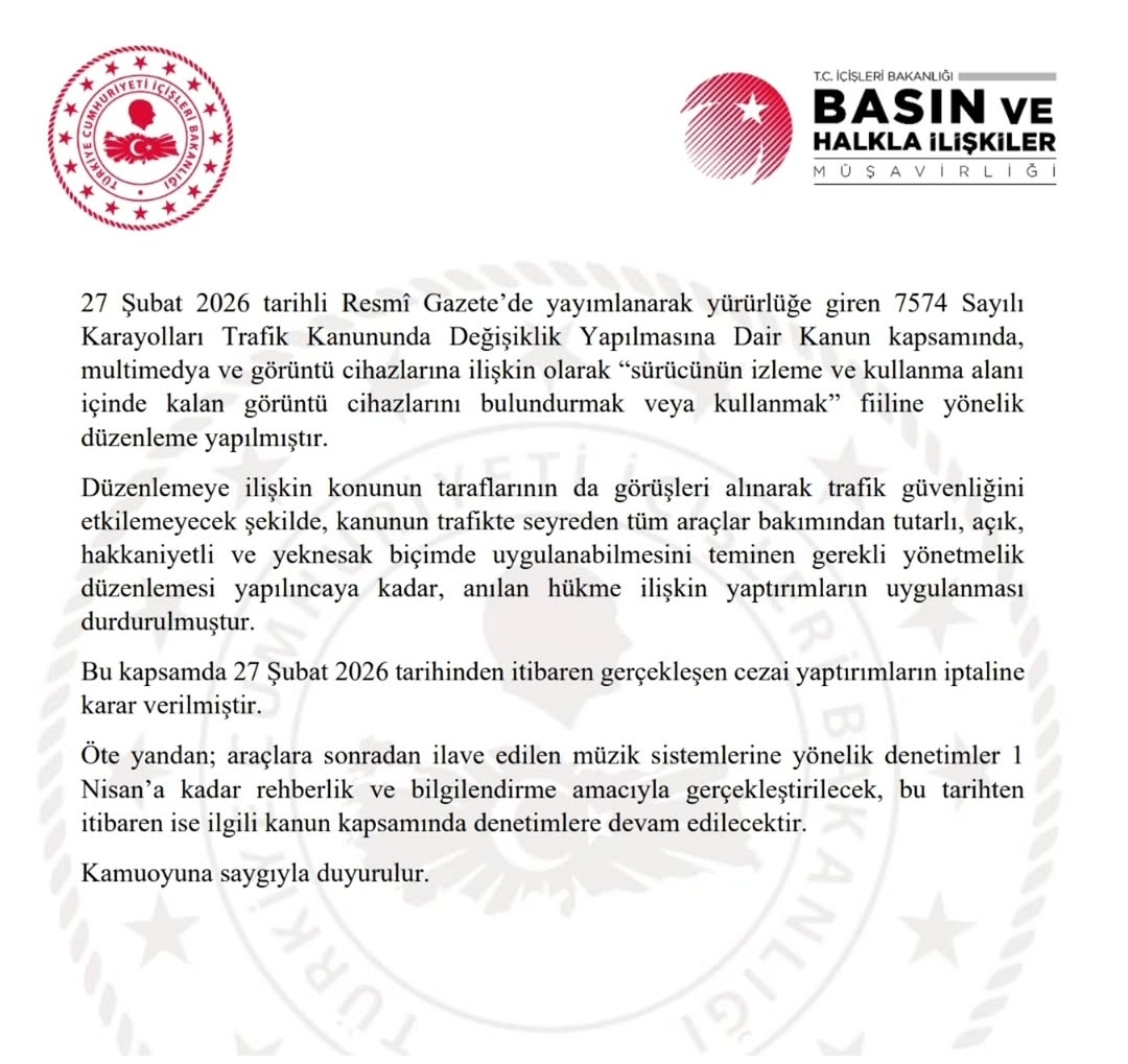 Araç içi Multimedya Ekran Yasağı Durduruldu.